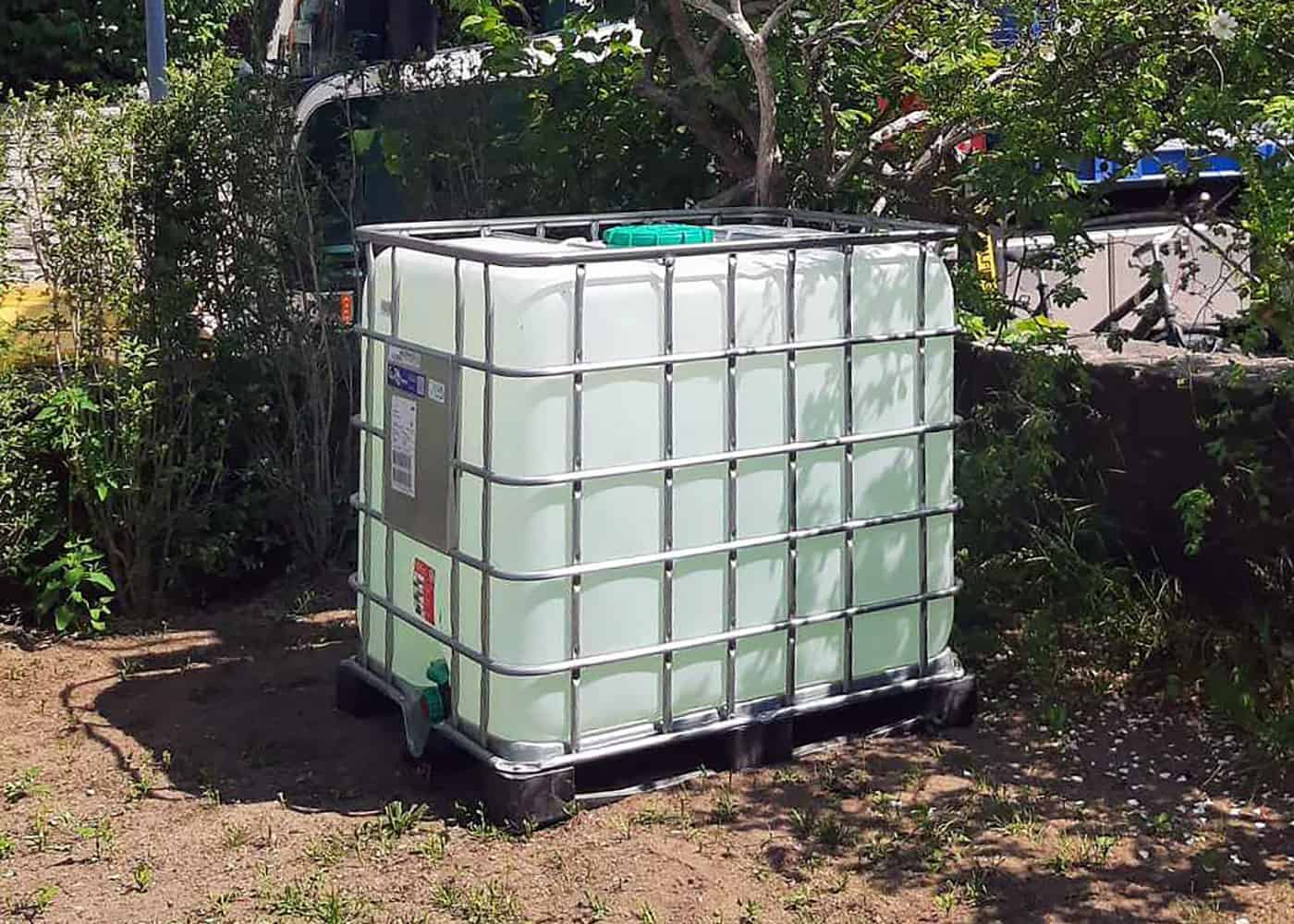 En IBC är utmärkt till att samla regnvatten i så man har till bevattning i trädgården. OBS! Begagnad. Tanken är ej rengjord, förekommer rester av matolja.